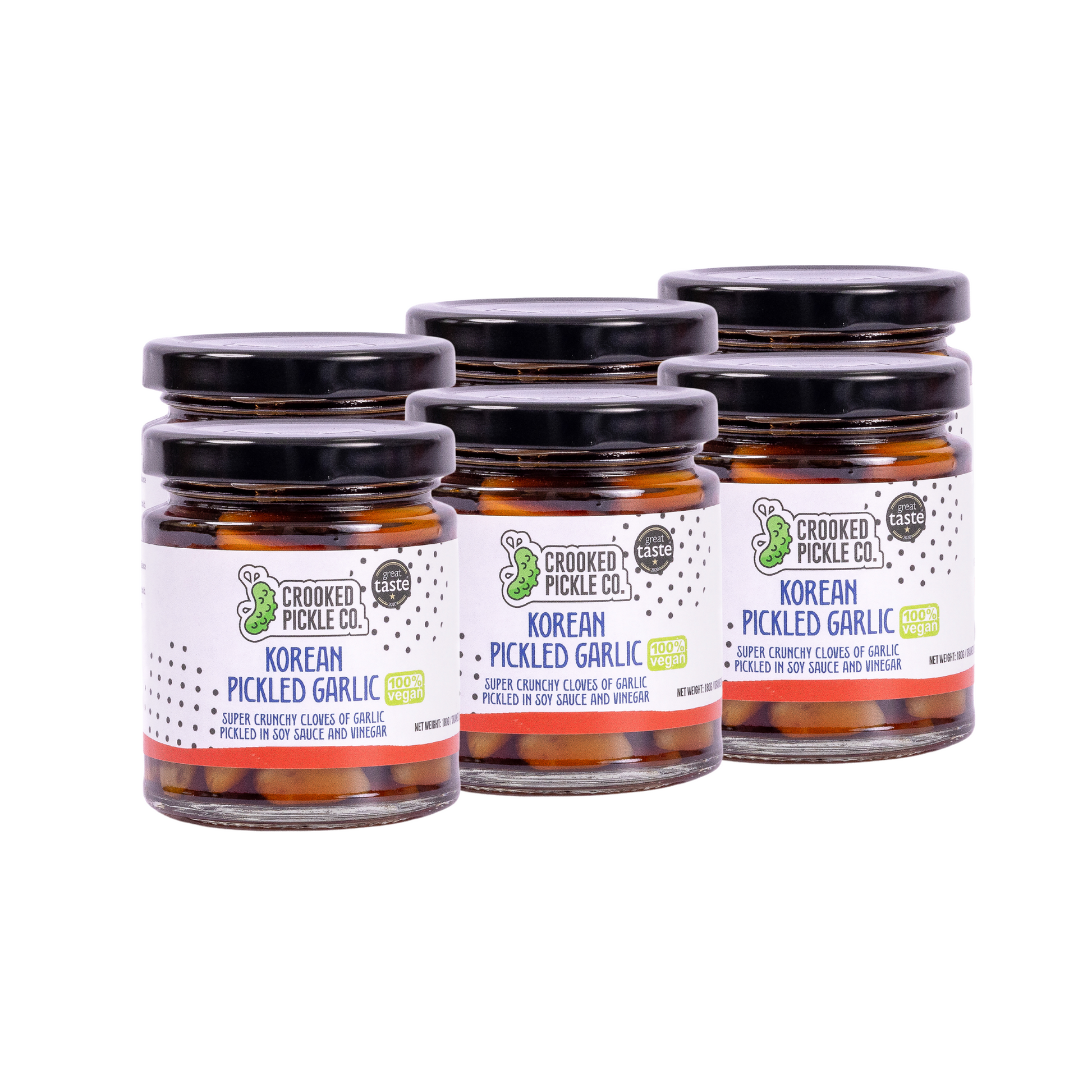 ''Super crunchy cloves of garlic in a well-balanced Asian-spiced vinegar. The garlic takes on the flavours of the sweet and salty vinegar and has a gentle pungency without being overpowering. Very versatile and great for the larder.''